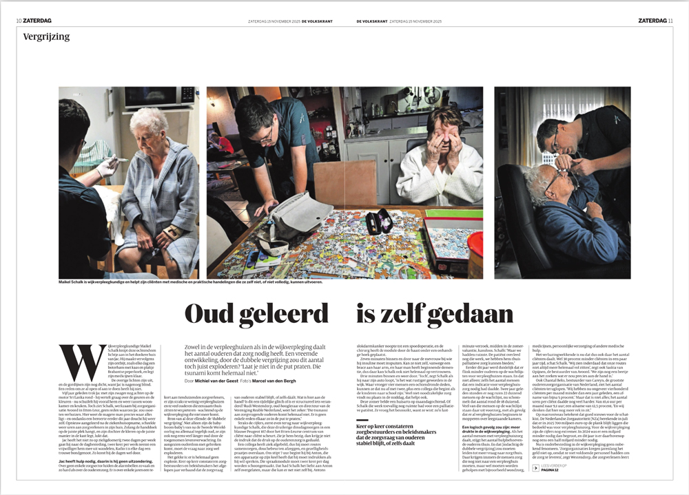 Het gekke is: er is helemaal geen explosie. Keer op keer constateren zorgbestuurders en beleidsmakers het afgelopen jaar verbaasd dat de zorgvraag van ouderen stabiel blijft, of zelfs dáált. Wat is hier aan de hand? De Volkskrant bracht hierover zaterdag 15 november een groot achtergrond artikel. Daarin vertellen wetenschappers en zorgprofessionals over allerlei achtergronden van deze daling. Sommige zullen je bekend in de oren klinken, andere zijn weer heel verrassend. Ook Careyn collega’s komen aan het woord: Chantal Beks, raad van bestuur, en Caroline Smeets, wijkverpleegkundige preventief actie team (ZHE). Heel interessant, ga dus snel lezen!