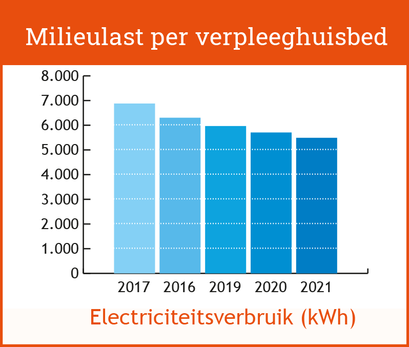 10% van de elektriciteit die de hele organisatie nodig heeft, kopen we in als echte groene stroom. Daarnaast wekken we veel stroom zelf op met zonne-energie. In 2021 hebben we op daken van veel zorgcentra zonnepanelen gelegd, in totaal ongeveer 3000. De opgewekte stroom is goed voor ongeveer 10% van het totale energieverbruik van Careyn.