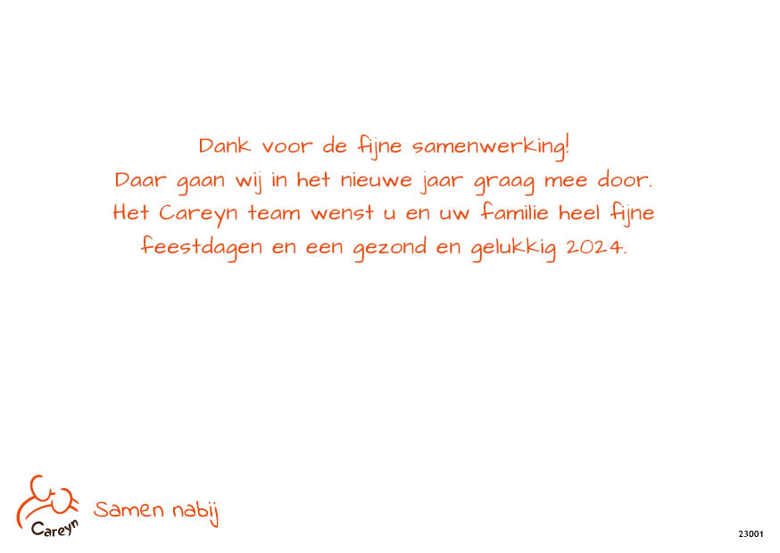 Ook jij komt ze elke dag tegen: partner, familie of vrienden die een bijdrage leveren aan de zorg voor onze cliënten. Toon je waardering met een kaartje. Om persoonlijk uit te reiken of achter te laten bij je bezoek aan je cliënt. Keuze uit 2 ontwerpen.